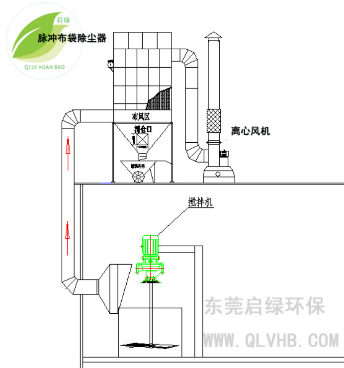 车间搅拌粉尘除尘设备工程图示